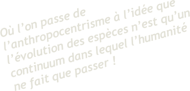 A l'époque bien sûr, on n'avait pas encore pris conscience du phénomène de l'évolution des espèces et on considérait que l'homme, créature à l'image de Dieu, régnait sur toutes les espèces inférieures.
